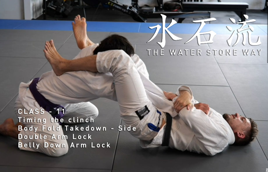 WATER STONE WAY - Class 11 Timing the clinch Body Fold Takedown - Side Double Arm Lock - Closed Guard Belly Down Arm Lock - Closed Guard