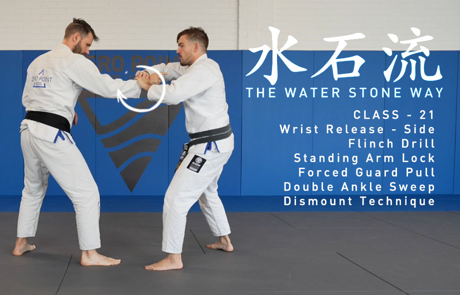 WATER STONE WAY - Class 21 Wrist Release - Side Flinch Drill - Push Parry Standing Arm Lock Forced Guard Pull Double Ankle Sweep - Guard Dismount Technique