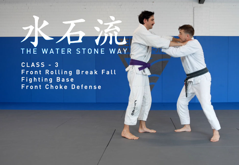 Class three of the Water Stone Way. - Forward Rolling break fall - Finding fighting base - Two hand front choke escape - Off the wall / Forward and back
