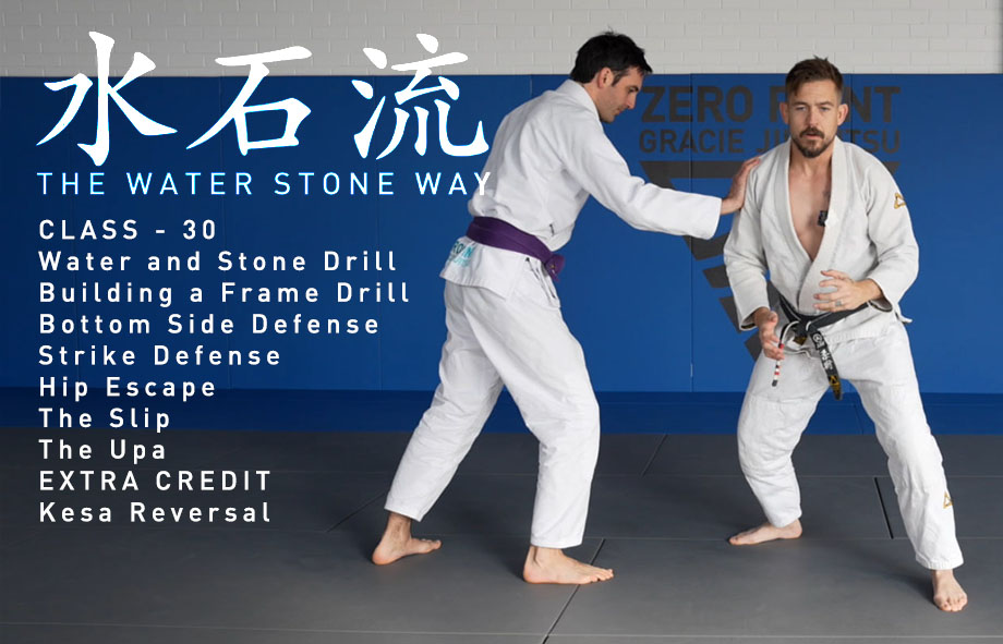 WATER STONE WAY - Class 30 Water and Stone Drill Building a Frame Drill Bottom Side Defense Strike Defense Hip Escape The Slip The Upa EXTRA CREDIT Kesa Reversal